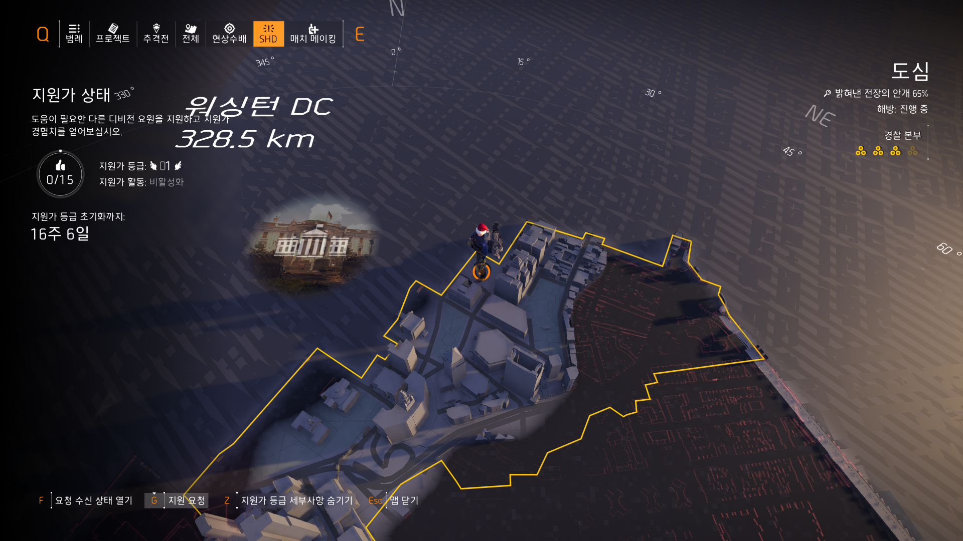 맵에서 SHD 탭에 들어간 후, G를 길게 눌러 지원 요청을 부른다. 미션 시작 전이든, 진행 중이든 상관없다.