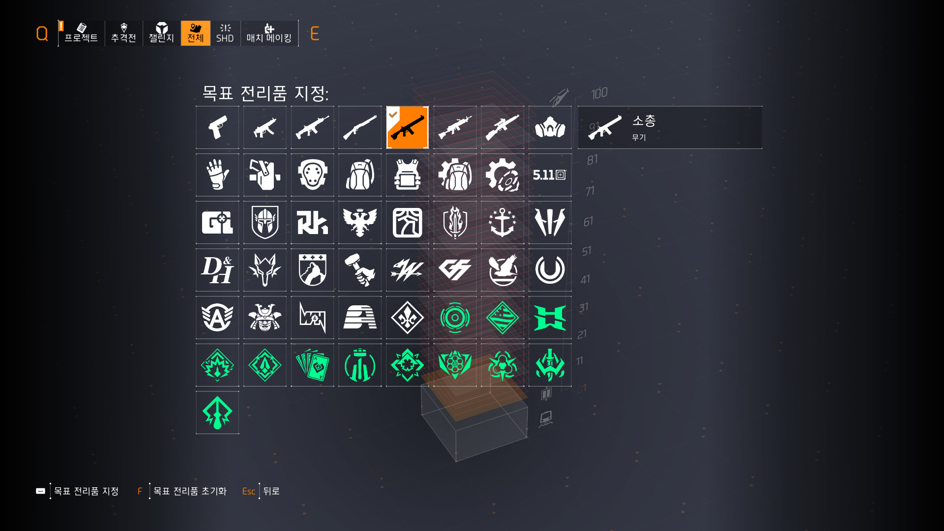 2. 맵 열고 R을 눌러서 목표 전리품 설정에 들어간다.