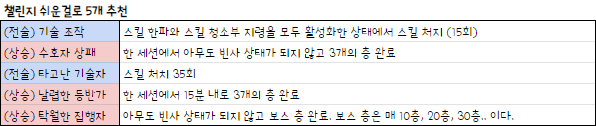 챌린지를 쉬운것만 딱 5개 하는 것이 목표이다. 우측에 챌린지 보상 5에 "축전기"가 있는게 보일 거다.