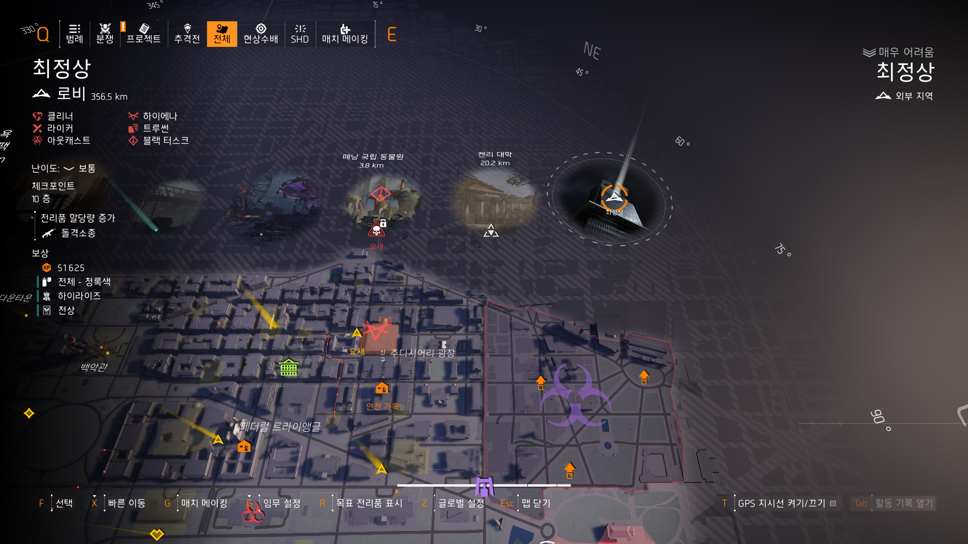 맵 우측 상단에 최정상이 있다. 빠른 이동하자.